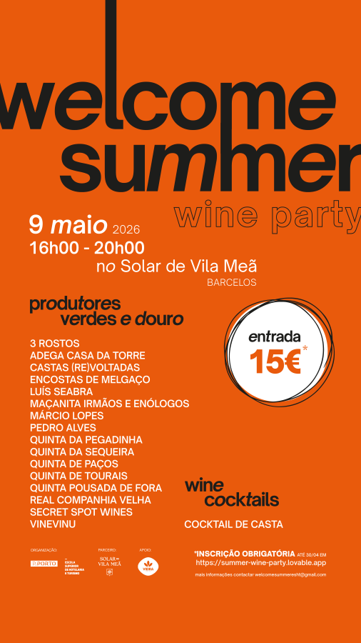 No próximo dia 9 de maio, o icónico Solar de Vila Meã, em Barcelos, transforma-se no palco principal para dar as boas-vindas à estação quente. O evento “Welcome Summer Wine Party”, organizado pela turma de Pós-Graduação em Enoturismo da Escola Superior de Hotelaria e Turismo do Porto (ESHT), promete uma tarde de imersão total na cultura vitivinícola nacional.